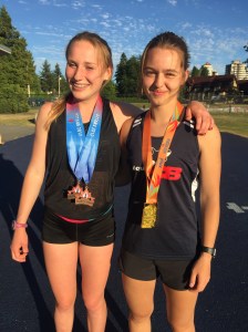 Grade 11, New Westminster Hyack athlete and Royal City Track and Field Club member, Grace Fetherstonhaugh, set a new high school record in the women’s 1500m steeplechase with a blistering gold medal winning time of 4:54.81, breaking the old record of 4:58.85 set in 2011. Grace’s gold medal capped off a triple medal performance at the 2017 BC High School Track and Field Championships in Langley’s McLeod Athletic Park this past weekend. She also won a pair of bronze medals in the 1500m in a personal best time of 4:32.80 and the 3000m in a time of 9:51.03.