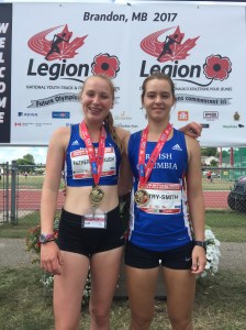 Coming in with a double medal performance was Terry Fox, grade 11 athlete, Jv Patry-Smith, who won a pair of senior division bronze medals in the shot put with a personal best put of 10.35m and the discus with another personal best throw of 34.78m. Jv had a trio of personal best performances by also making the finals in the senior girls javelin with a throw of 40.41m, placing her fourth.
